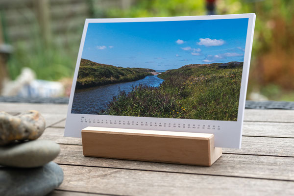 Das Foto mit dem Holzständer zeigt den 2025er Kalender.